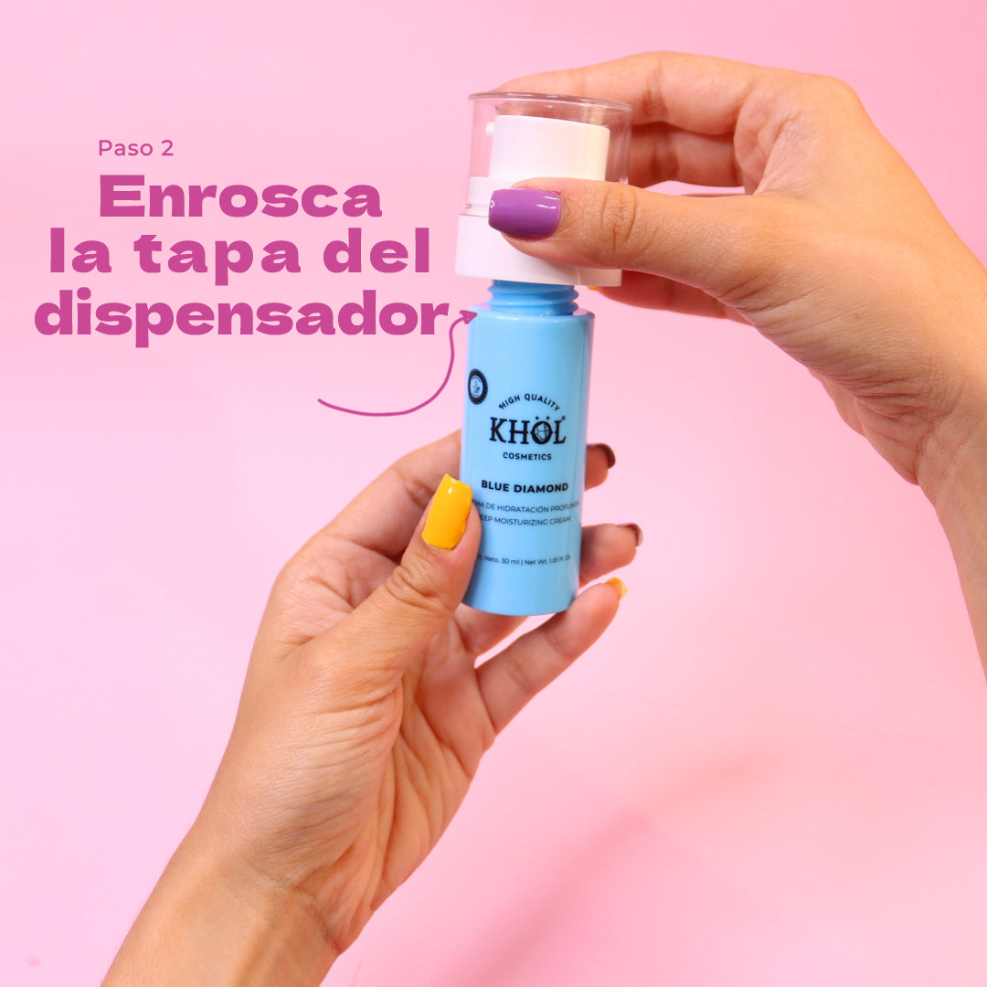 Aplicar dos veces al día (mañana y noche) sobre el rostro limpio. Toma una pequeña cantidad con la yema de los dedos y distribuye con suaves masajes en rostro, cuello y escote hasta su completa absorción.